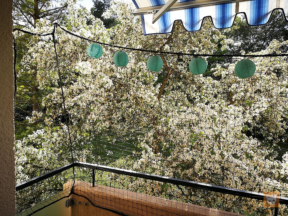 Mit den Augen einer Katze betrachtet ist das fette Beute, nur einen Katzensprung entfernt! Bei mir ging das Kopfkino los: Was, wenn Elvis eines Tages auf den Baum springt, weil er einen Vogel fangen will? Und dabei abstürzt und sich sämtliche Knochen bricht? Oder es nicht wieder zurück auf den Balkon schafft, vom Baum springt, sich verirrt und nie wieder nach Hause findet? Uns war schnell klar, ohne Netz geht hier gar nichts.